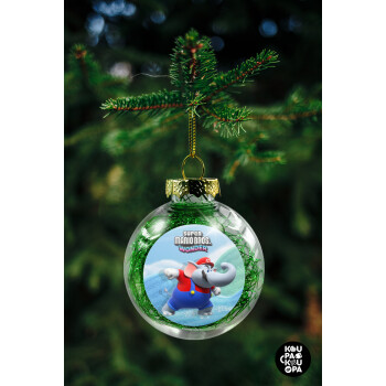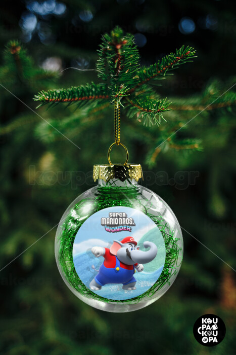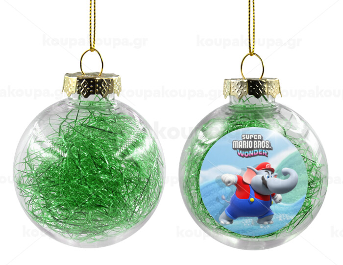 Super mario wonder, Στολίδι Χριστουγεννιάτικη μπάλα δένδρου διάφανη με πράσινο γέμισμα 8cm