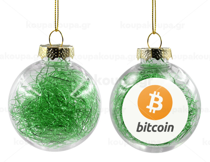Bitcoin, Στολίδι Χριστουγεννιάτικη μπάλα δένδρου διάφανη με πράσινο γέμισμα 8cm