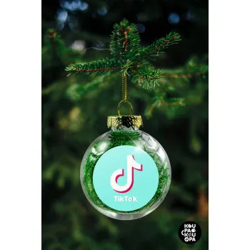tik tok blue, Στολίδι Χριστουγεννιάτικη μπάλα δένδρου διάφανη με πράσινο γέμισμα 8cm