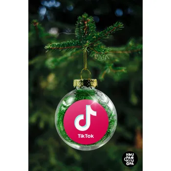 tik tok pink, Στολίδι Χριστουγεννιάτικη μπάλα δένδρου διάφανη με πράσινο γέμισμα 8cm
