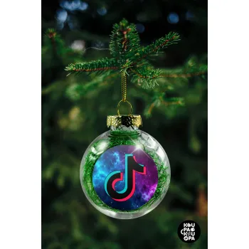 tiktok space galaxy, Στολίδι Χριστουγεννιάτικη μπάλα δένδρου διάφανη με πράσινο γέμισμα 8cm