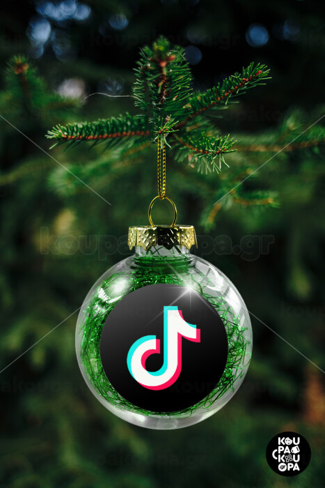 TikTok, Στολίδι Χριστουγεννιάτικη μπάλα δένδρου διάφανη με πράσινο γέμισμα 8cm