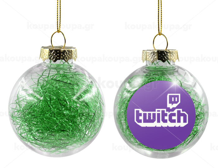 Twitch, Στολίδι Χριστουγεννιάτικη μπάλα δένδρου διάφανη με πράσινο γέμισμα 8cm