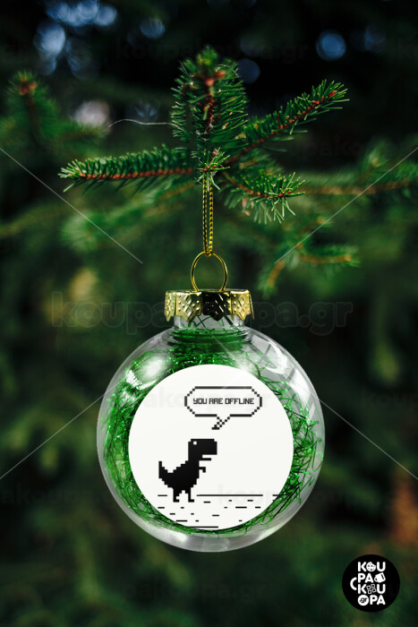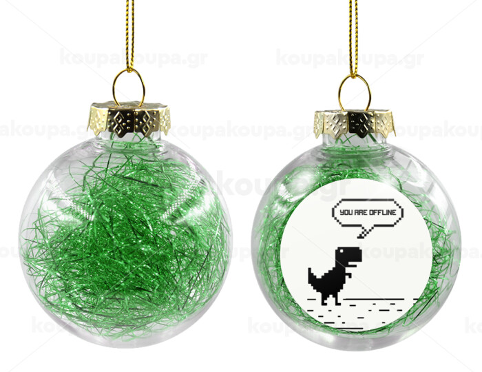 You are offline dinosaur, Στολίδι Χριστουγεννιάτικη μπάλα δένδρου διάφανη με πράσινο γέμισμα 8cm