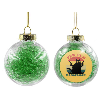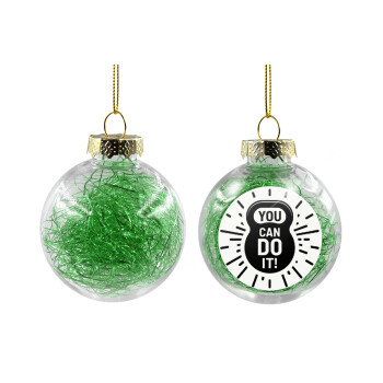 Believe in your self, Στολίδι Χριστουγεννιάτικη μπάλα δένδρου διάφανη με πράσινο γέμισμα 8cm