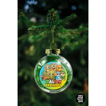 Italian Brainrot friends, Στολίδι Χριστουγεννιάτικη μπάλα δένδρου διάφανη με πράσινο γέμισμα 8cm