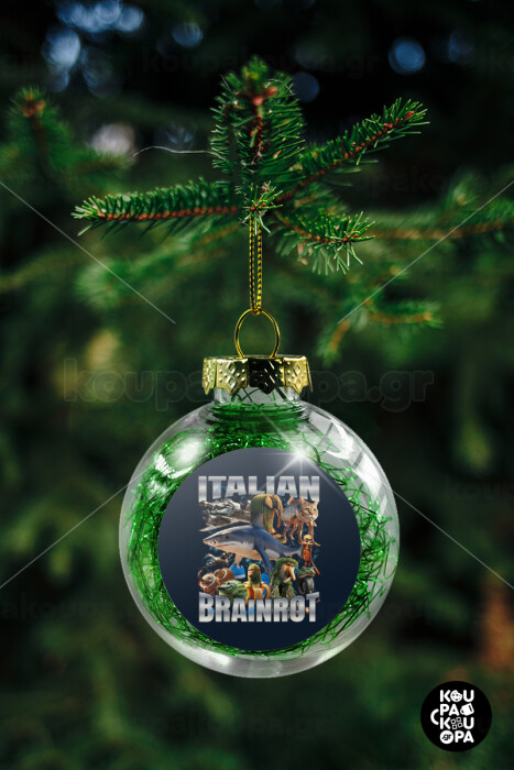 Italian Brainrot, Στολίδι Χριστουγεννιάτικη μπάλα δένδρου διάφανη με πράσινο γέμισμα 8cm