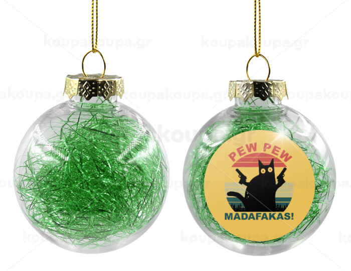 PEW PEW madafakas, Στολίδι Χριστουγεννιάτικη μπάλα δένδρου διάφανη με πράσινο γέμισμα 8cm