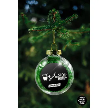 Spend Money, Στολίδι Χριστουγεννιάτικη μπάλα δένδρου διάφανη με πράσινο γέμισμα 8cm