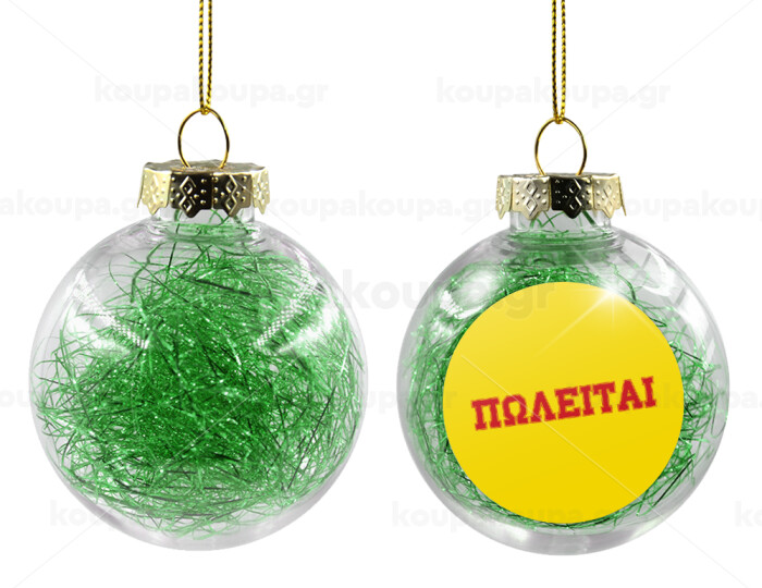 ΠΩΛΕΙΤΑΙ, Στολίδι Χριστουγεννιάτικη μπάλα δένδρου διάφανη με πράσινο γέμισμα 8cm