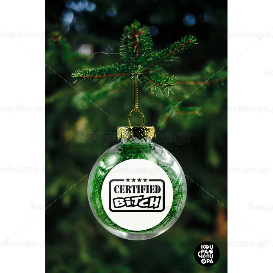 Certified Bitch, Στολίδι Χριστουγεννιάτικη μπάλα δένδρου διάφανη με πράσινο γέμισμα 8cm