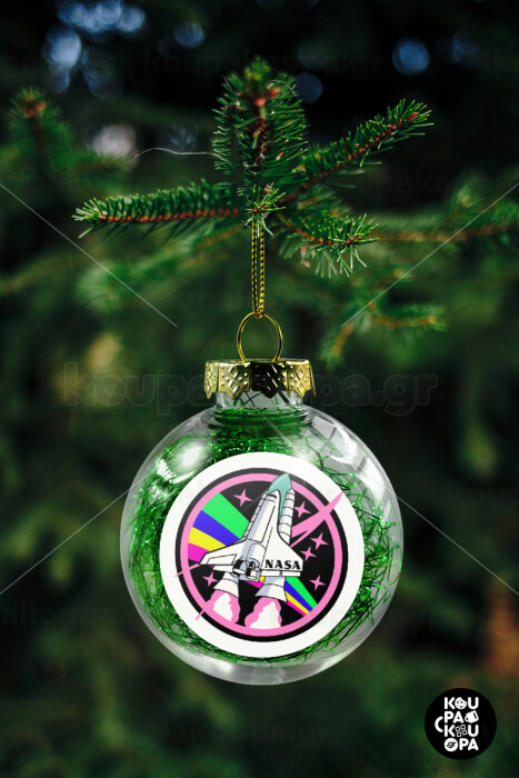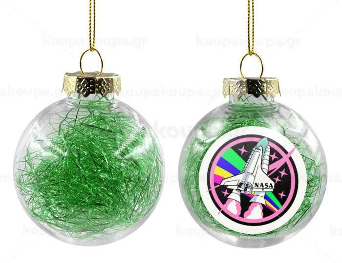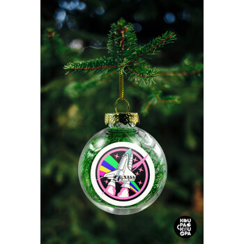 NASA pink, Στολίδι Χριστουγεννιάτικη μπάλα δένδρου διάφανη με πράσινο γέμισμα 8cm