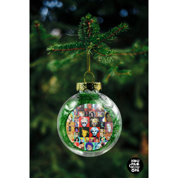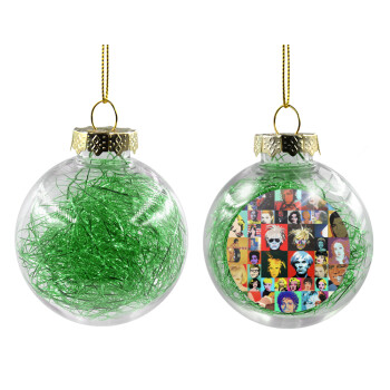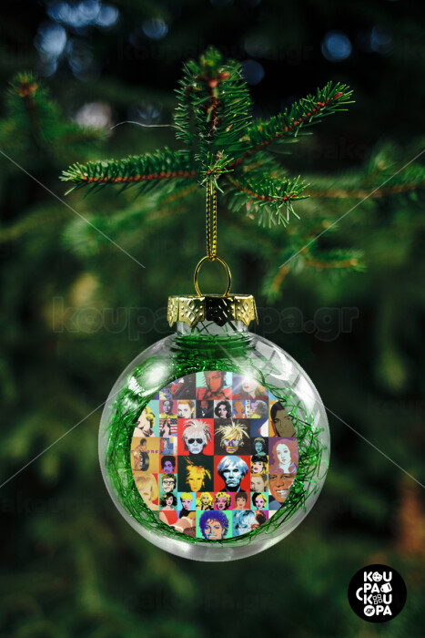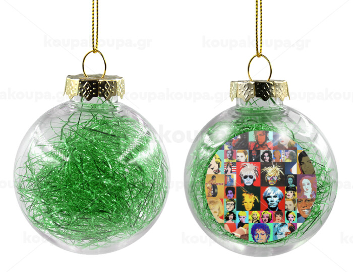 Warhol pop art, Στολίδι Χριστουγεννιάτικη μπάλα δένδρου διάφανη με πράσινο γέμισμα 8cm