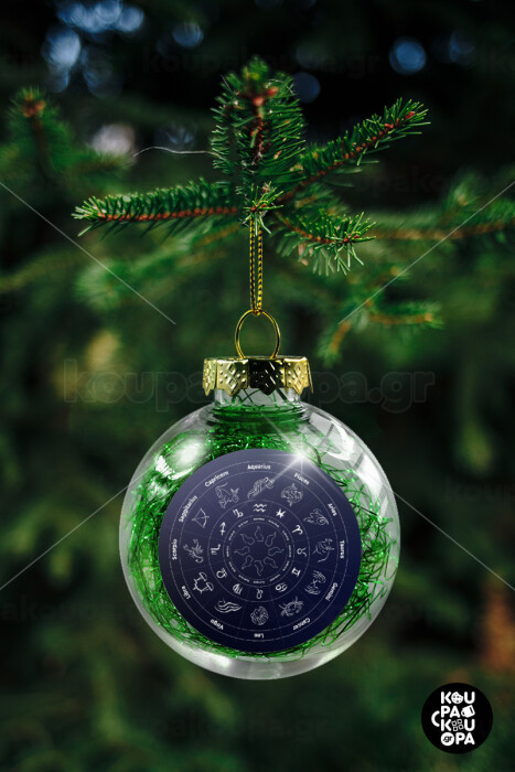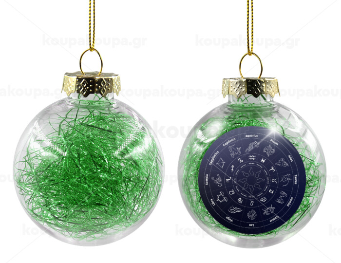 Ζωδιακός κύκλος, Στολίδι Χριστουγεννιάτικη μπάλα δένδρου διάφανη με πράσινο γέμισμα 8cm