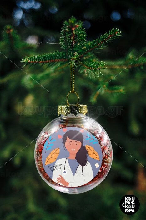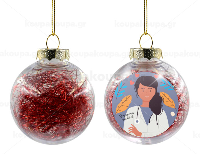 Ευχαριστώ για όλα γιατρέ, Στολίδι Χριστουγεννιάτικη μπάλα δένδρου διάφανη με κόκκινο γέμισμα 8cm