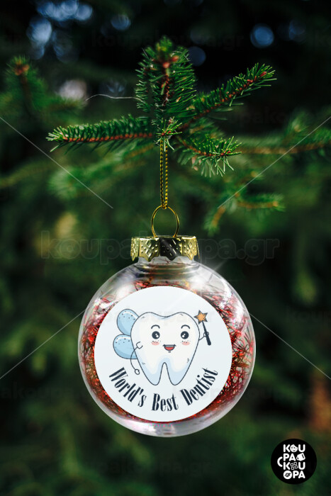 World's Best Dentist, Στολίδι Χριστουγεννιάτικη μπάλα δένδρου διάφανη με κόκκινο γέμισμα 8cm