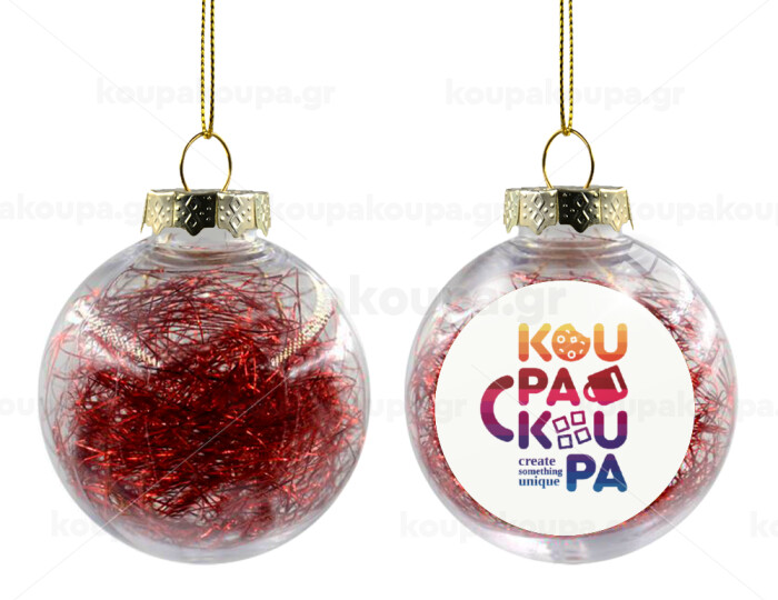 koupakoupa, Στολίδι Χριστουγεννιάτικη μπάλα δένδρου διάφανη με κόκκινο γέμισμα 8cm
