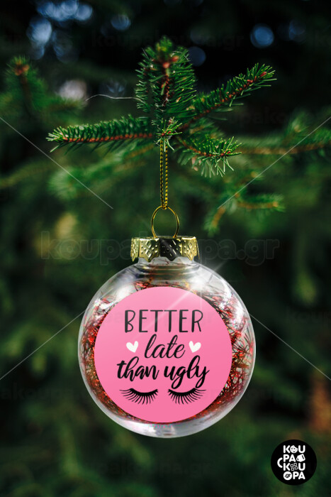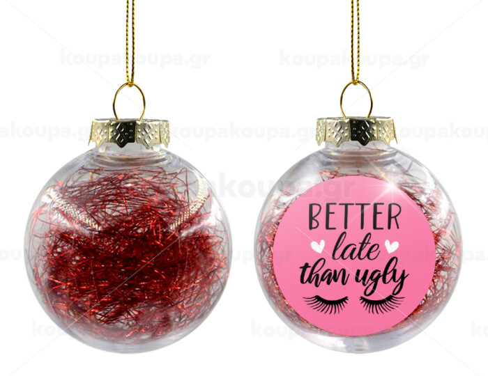 Better Late than ugly hearts, Στολίδι Χριστουγεννιάτικη μπάλα δένδρου διάφανη με κόκκινο γέμισμα 8cm