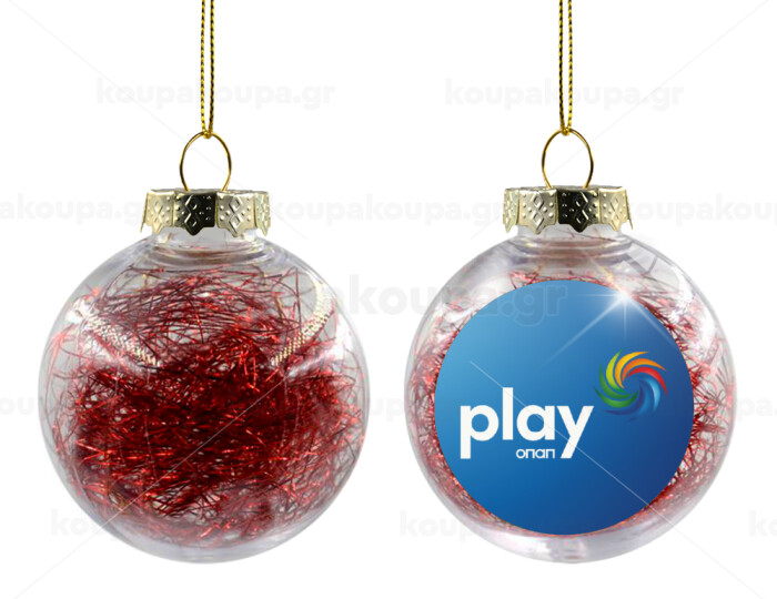 Play by ΟΠΑΠ, Στολίδι Χριστουγεννιάτικη μπάλα δένδρου διάφανη με κόκκινο γέμισμα 8cm
