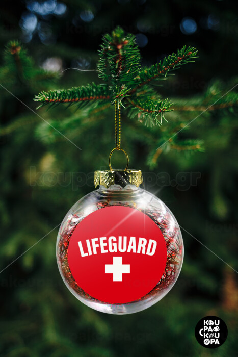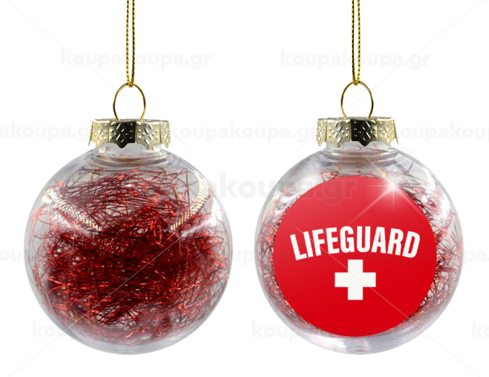Lifeguard, Στολίδι Χριστουγεννιάτικη μπάλα δένδρου διάφανη με κόκκινο γέμισμα 8cm