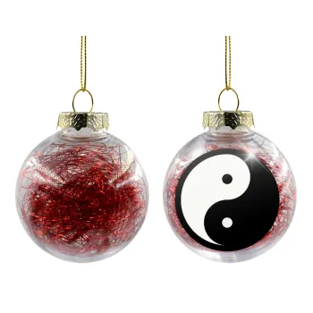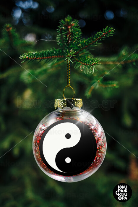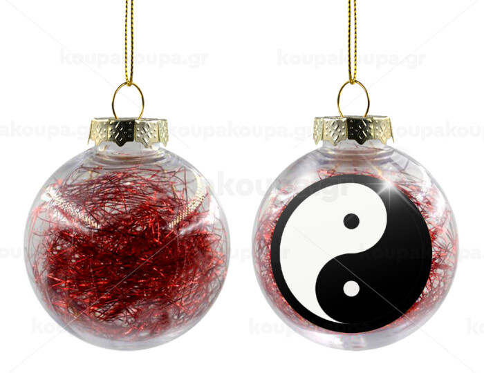 Yin Yang, Στολίδι Χριστουγεννιάτικη μπάλα δένδρου διάφανη με κόκκινο γέμισμα 8cm