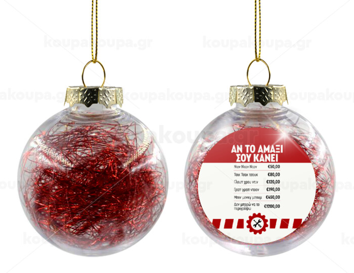 Annoying Noise in Car, Στολίδι Χριστουγεννιάτικη μπάλα δένδρου διάφανη με κόκκινο γέμισμα 8cm