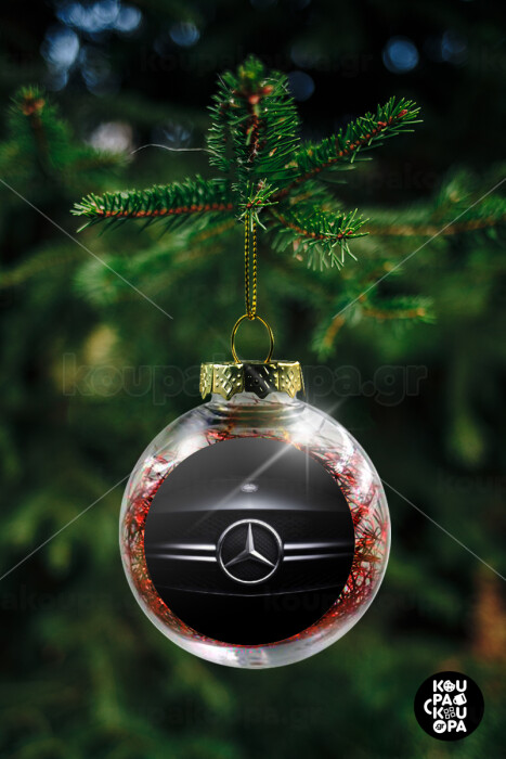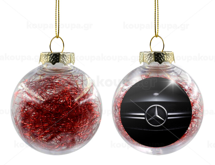 Mercedes car, Στολίδι Χριστουγεννιάτικη μπάλα δένδρου διάφανη με κόκκινο γέμισμα 8cm