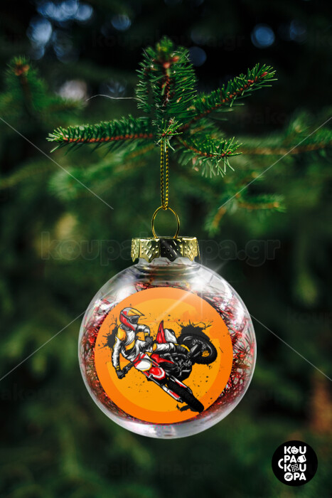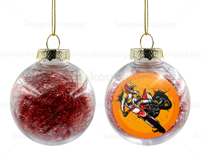 Motocross, Στολίδι Χριστουγεννιάτικη μπάλα δένδρου διάφανη με κόκκινο γέμισμα 8cm