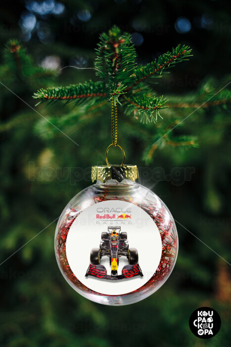 Redbull Racing Team F1, Στολίδι Χριστουγεννιάτικη μπάλα δένδρου διάφανη με κόκκινο γέμισμα 8cm