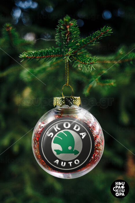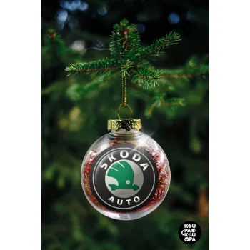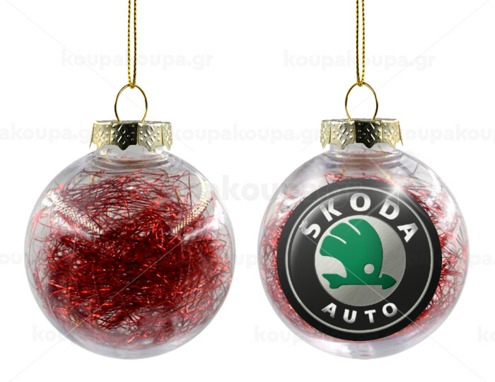 SKODA, Στολίδι Χριστουγεννιάτικη μπάλα δένδρου διάφανη με κόκκινο γέμισμα 8cm