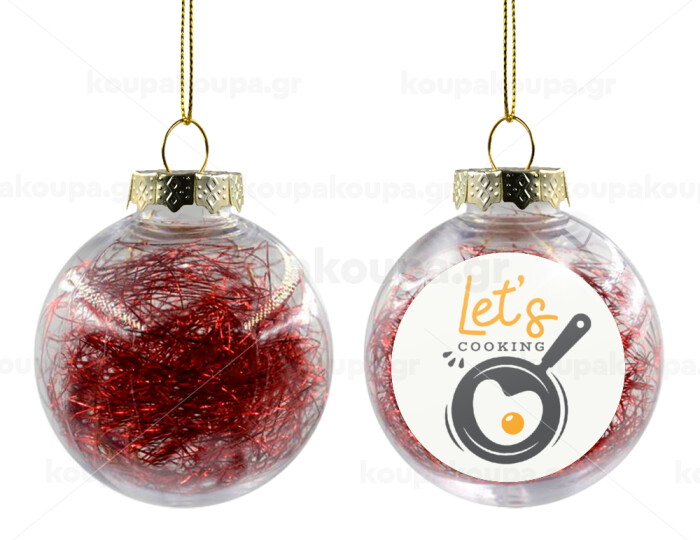 Let's cooking, Στολίδι Χριστουγεννιάτικη μπάλα δένδρου διάφανη με κόκκινο γέμισμα 8cm