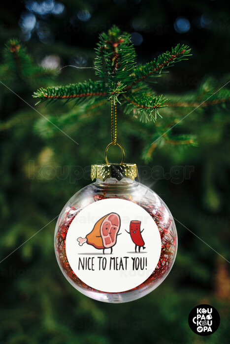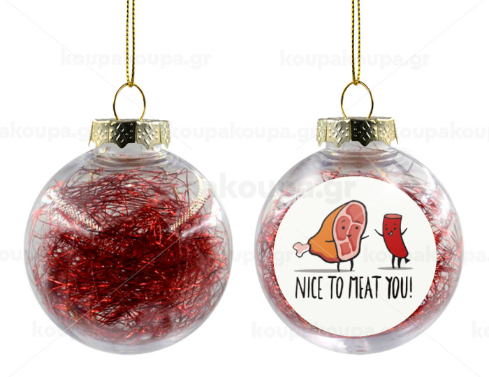 Nice to MEAT you, Στολίδι Χριστουγεννιάτικη μπάλα δένδρου διάφανη με κόκκινο γέμισμα 8cm