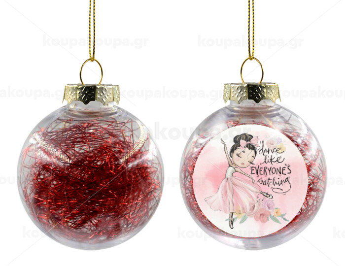 Dance Like everyone's watching, Στολίδι Χριστουγεννιάτικη μπάλα δένδρου διάφανη με κόκκινο γέμισμα 8cm
