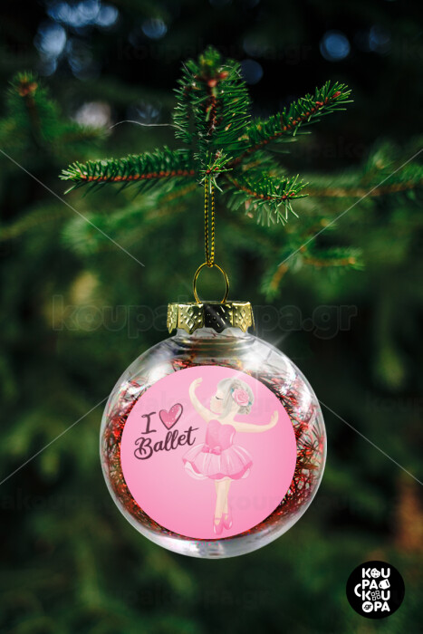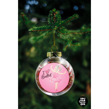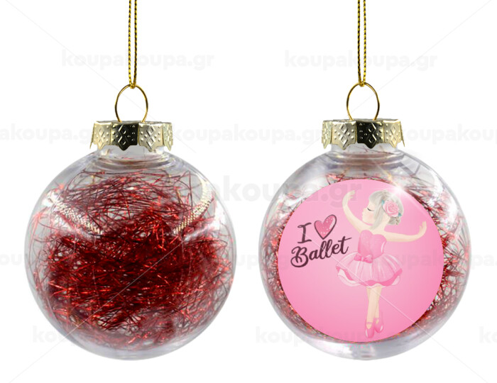 I Love Ballet, Στολίδι Χριστουγεννιάτικη μπάλα δένδρου διάφανη με κόκκινο γέμισμα 8cm