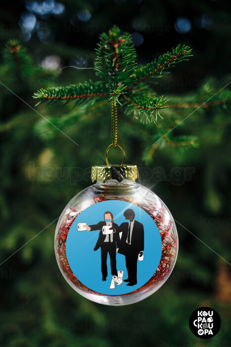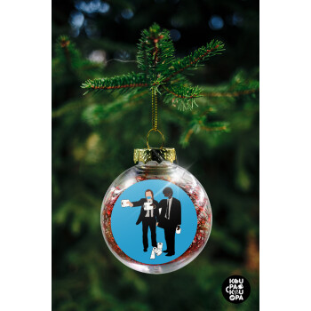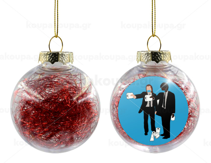Pulp Fiction 3 meter away, Στολίδι Χριστουγεννιάτικη μπάλα δένδρου διάφανη με κόκκινο γέμισμα 8cm