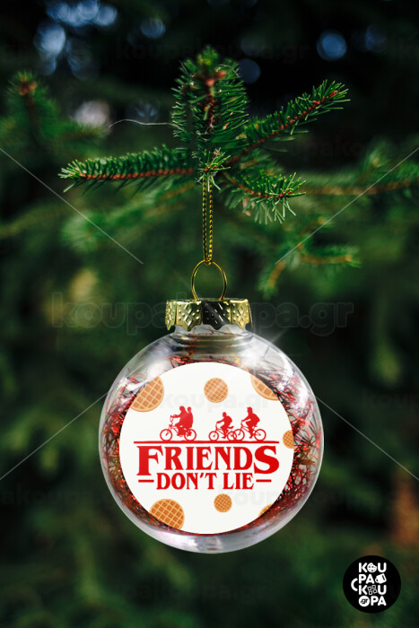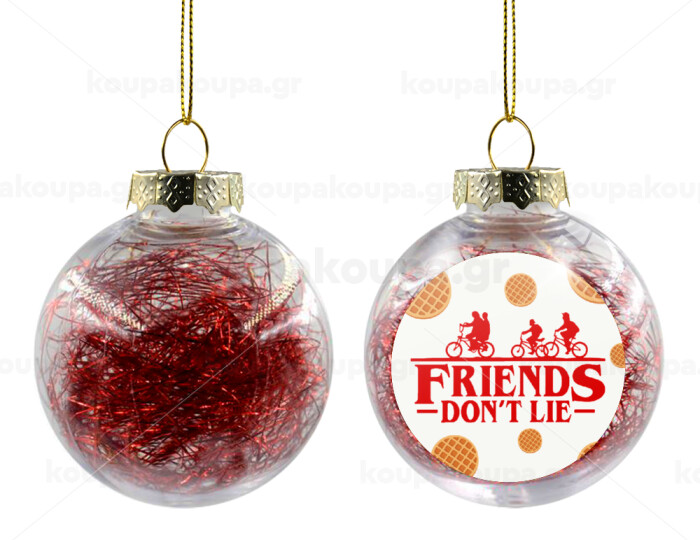 Friends Don't Lie, Stranger Things, Στολίδι Χριστουγεννιάτικη μπάλα δένδρου διάφανη με κόκκινο γέμισμα 8cm