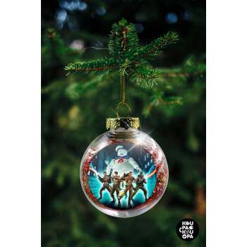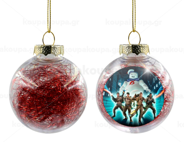 Ghostbusters team, Στολίδι Χριστουγεννιάτικη μπάλα δένδρου διάφανη με κόκκινο γέμισμα 8cm