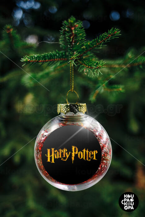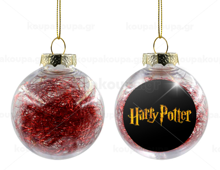 Harry potter movie, Στολίδι Χριστουγεννιάτικη μπάλα δένδρου διάφανη με κόκκινο γέμισμα 8cm