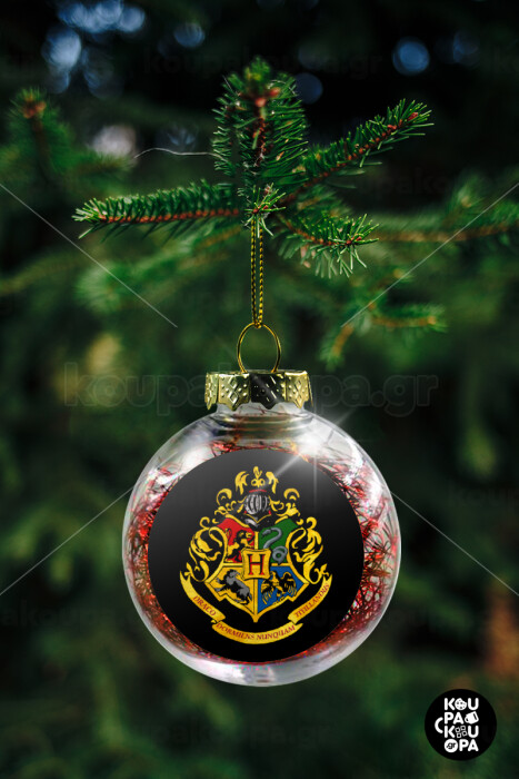 Hogwart's, Στολίδι Χριστουγεννιάτικη μπάλα δένδρου διάφανη με κόκκινο γέμισμα 8cm