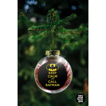 KEEP CALM & Call BATMAN, Στολίδι Χριστουγεννιάτικη μπάλα δένδρου διάφανη με κόκκινο γέμισμα 8cm