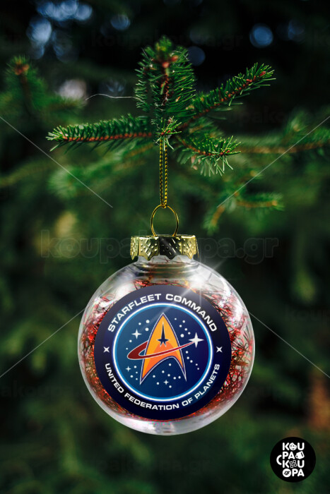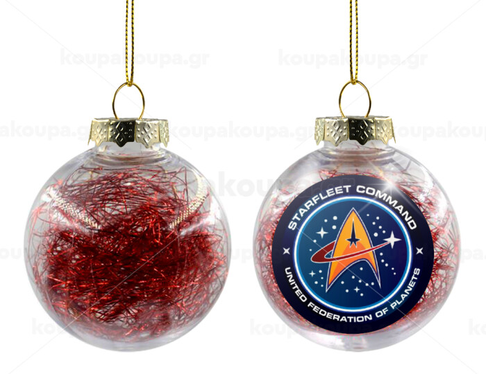 Starfleet command, Στολίδι Χριστουγεννιάτικη μπάλα δένδρου διάφανη με κόκκινο γέμισμα 8cm