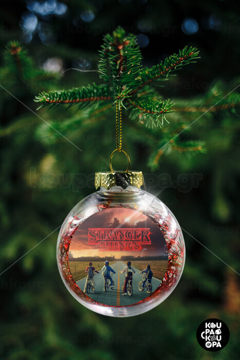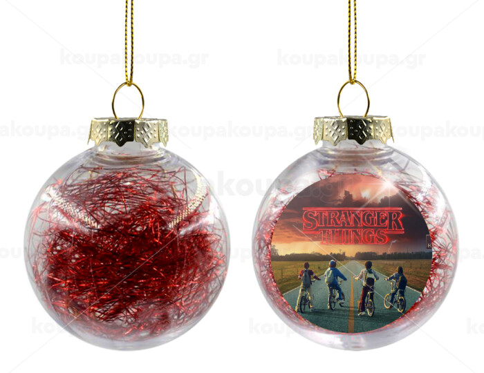 Stranger Things city, Στολίδι Χριστουγεννιάτικη μπάλα δένδρου διάφανη με κόκκινο γέμισμα 8cm