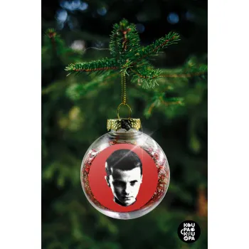 Stranger Things Eleven, Στολίδι Χριστουγεννιάτικη μπάλα δένδρου διάφανη με κόκκινο γέμισμα 8cm