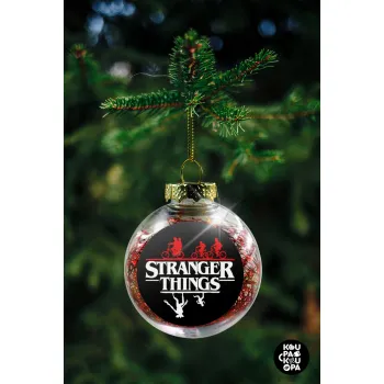 Stranger Things upside down, Στολίδι Χριστουγεννιάτικη μπάλα δένδρου διάφανη με κόκκινο γέμισμα 8cm