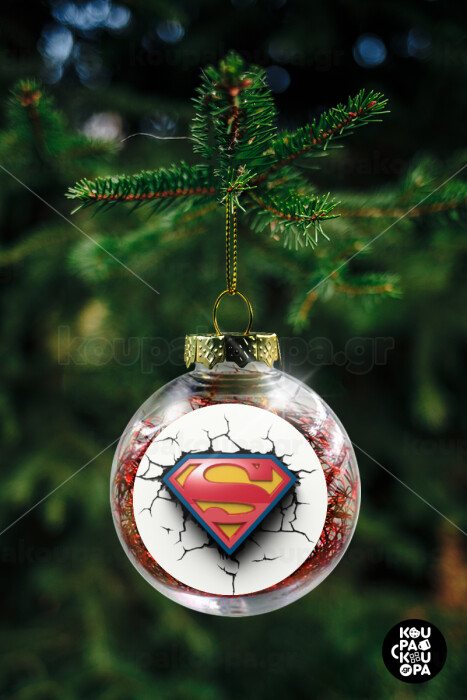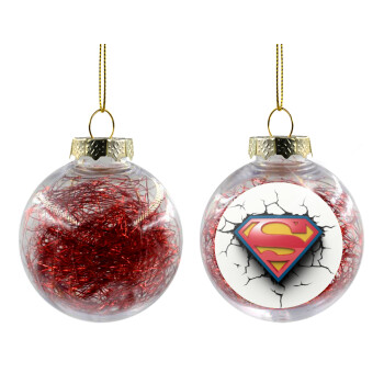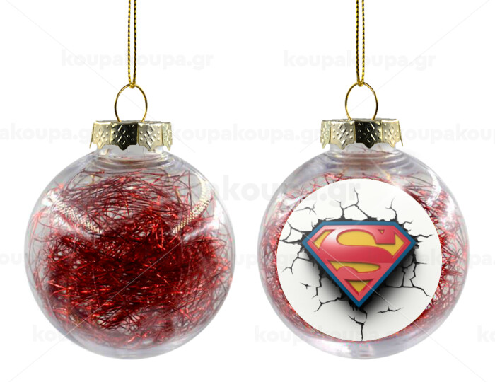 Superman cracked, Στολίδι Χριστουγεννιάτικη μπάλα δένδρου διάφανη με κόκκινο γέμισμα 8cm