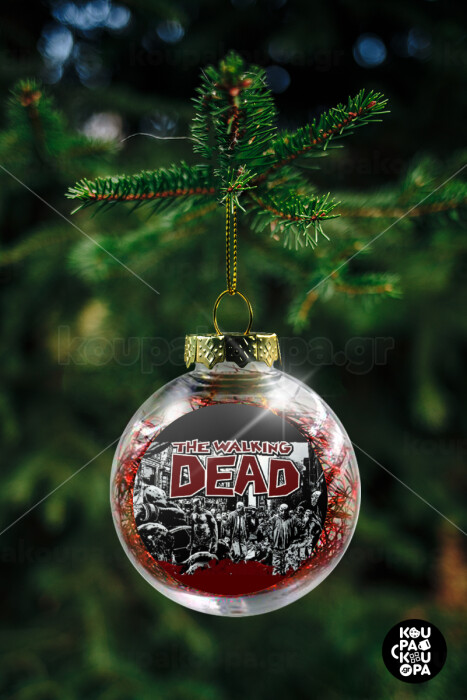 The walking dead comic drawing zombie, Στολίδι Χριστουγεννιάτικη μπάλα δένδρου διάφανη με κόκκινο γέμισμα 8cm