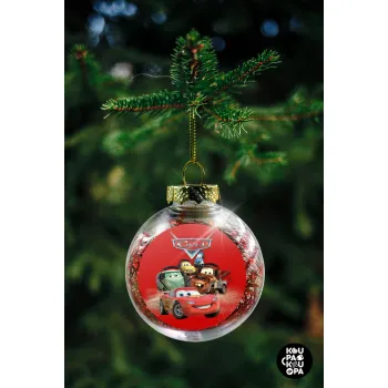 Αυτοκίνητα, Στολίδι Χριστουγεννιάτικη μπάλα δένδρου διάφανη με κόκκινο γέμισμα 8cm