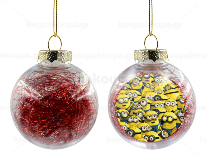 All the minions, Στολίδι Χριστουγεννιάτικη μπάλα δένδρου διάφανη με κόκκινο γέμισμα 8cm