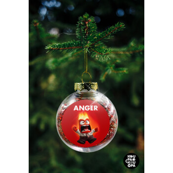 Anger, Θυμός, Στολίδι Χριστουγεννιάτικη μπάλα δένδρου διάφανη με κόκκινο γέμισμα 8cm
