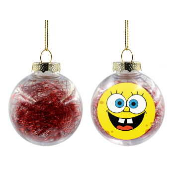 Μπομπ, Στολίδι Χριστουγεννιάτικη μπάλα δένδρου διάφανη με κόκκινο γέμισμα 8cm